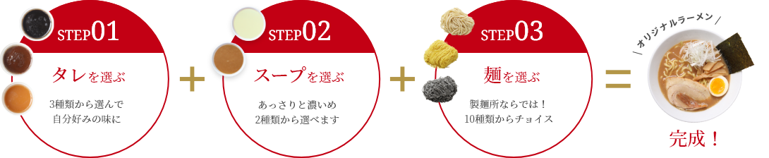 3種類の太さが違う麺が1玉になっており、異なる食感が楽しめる製麺所の技術が詰まった麺となっております。