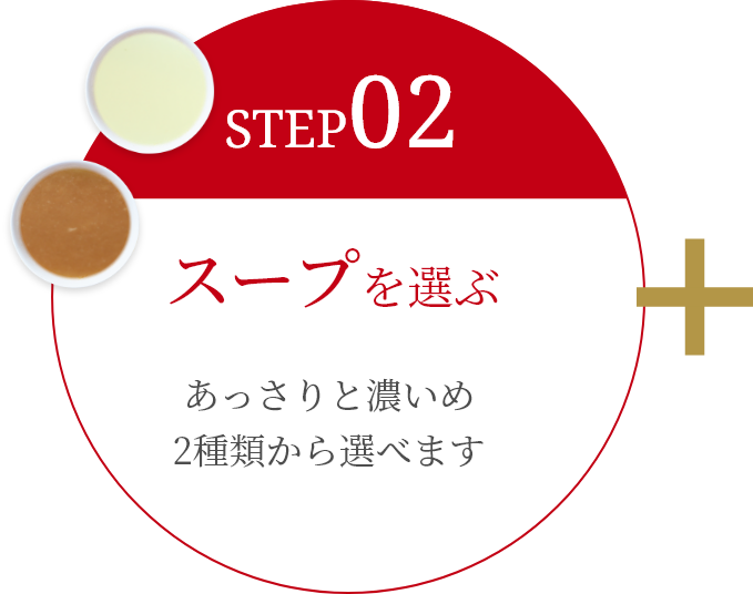 低加水の極細麵、歯切れの良い硬さが特徴の極細ぱっつん麺。濃厚スープにも負けない存在感のある麺となっております。