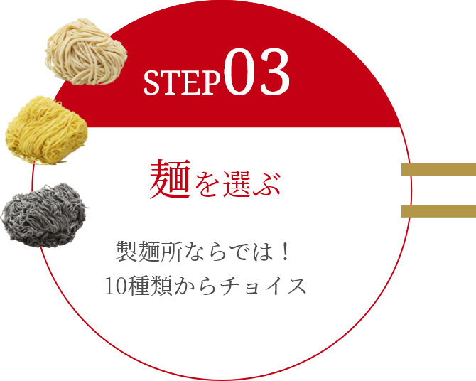 風味豊かな強力小麦粉オーションを配合し、真空熟成製法でコシを強化したワシワシ食感で、濃厚スープと相性抜群のちじれ麺となっております。