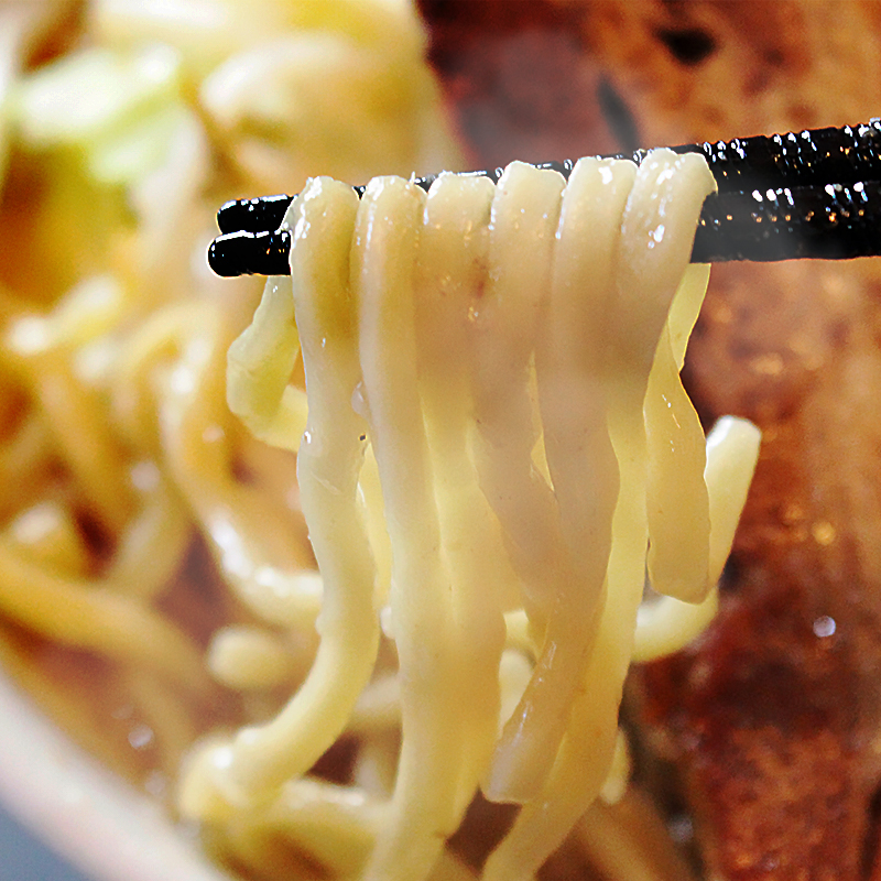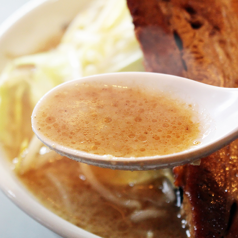 二郎系では珍しい味噌ベースでゴマの甘みの中に背油のパンチを効かせたスープ。