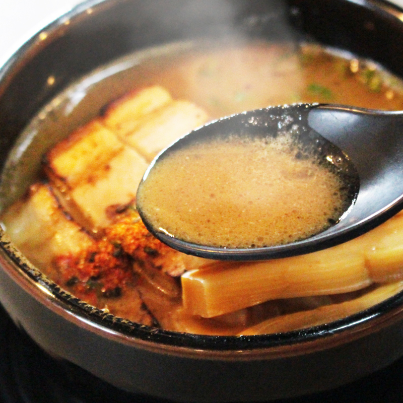 東海での濃厚つけ麺ブームのパイオニア的存在。名物でもある元祖つけ麺は、豚のゲンコツをじっくり煮込んだスープに、煮干しやサバ節などの和風ダシをブレンド。つけ汁はこってりとした豚の旨味を残しつつ、魚介のキレがバランスよく融合。