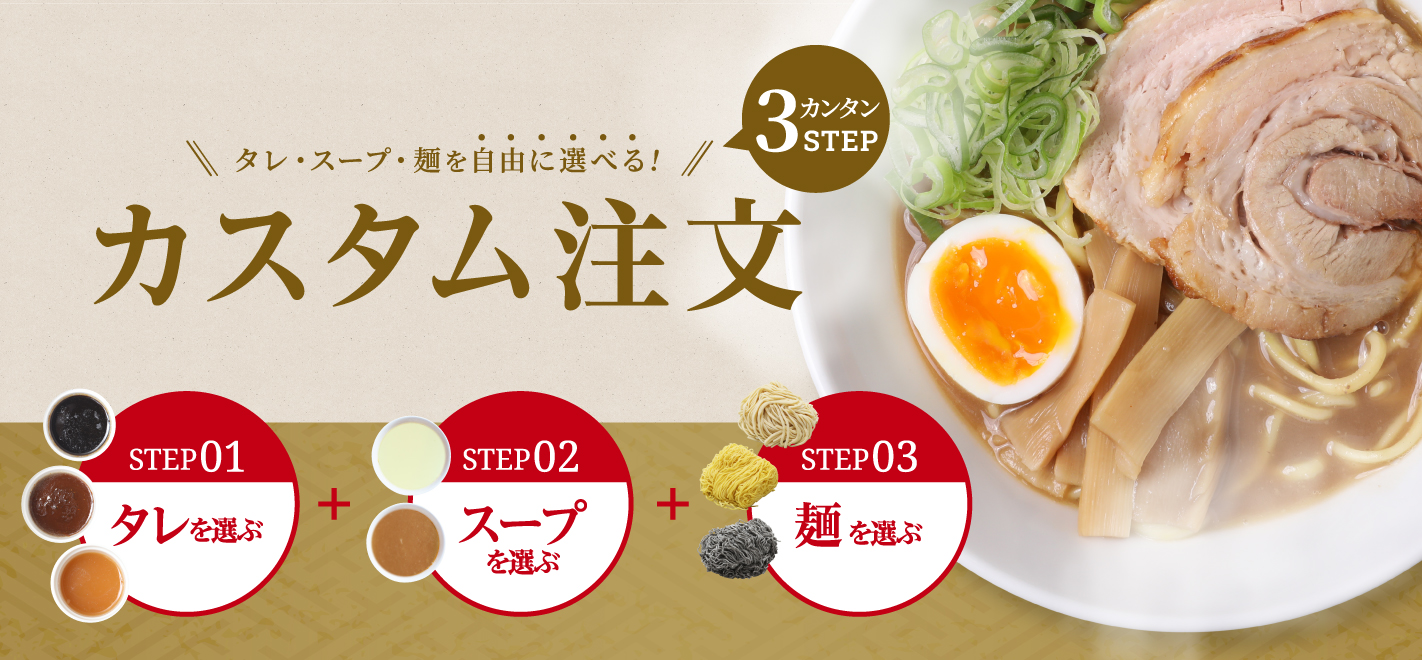 製麺所が贈る、スープ・麺・具材を自由に選べるカスタム注文で自分だけの特別な一杯がきっと見つかります。